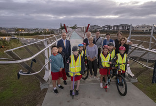 The newest walking and cycling bridge on the North Shore has opened, giving communities an iconic new connection over the Northern Motorway and directly into Albany.
