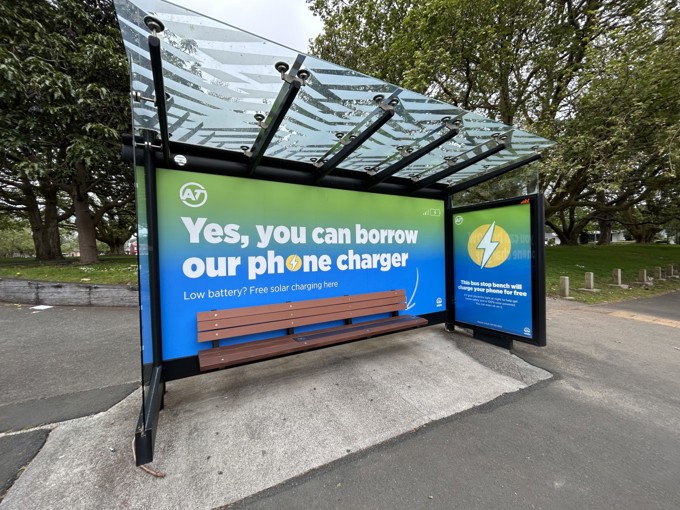 Trial brings new phone charging benches to Auckland central bus stops