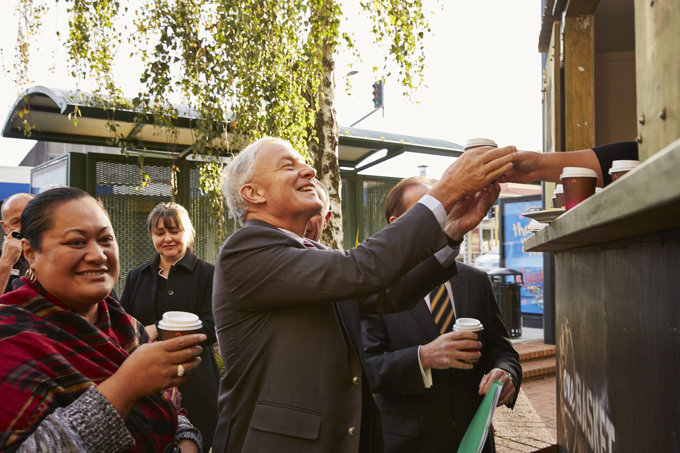The visit ended on George Street outside the Town Hall, where Mayor Goff enjoyed a coffee and a bite to eat from the Cook Islands courtesy of the oneCOOPERATIVE and oneBASKET, a pop-up community food truck.