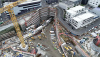 The excavation beneath the street level entrance floor and then the construction of the first underground floor has taken 10 weeks. Approximately 9000 cubic metres of material – enough to fill three Olympic-sized swimming pools - was first removed before 880 cubic metres of concrete was poured and some 280 tonnes of reinforcing steel fitted.