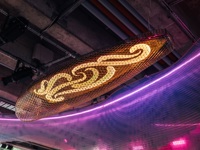 Within Waimahara, we see references to water. We hear immersive elements such as birdsong, taonga pūoro (traditional musical instruments), and we see references to taiao (nature) like kauri and hīnaki (fish trap) forms.