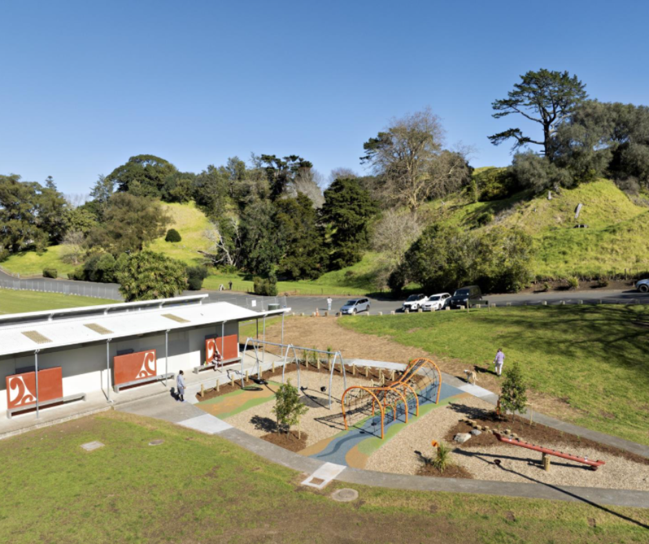This large park is full of surprises. Shady trees line the loop, leading into Ben Henham Park with a playground and toilets. Stick to the sealed track for pushchair access. The Tūpuna Maunga Authority has added a new māra hūpara / playground.