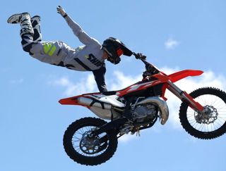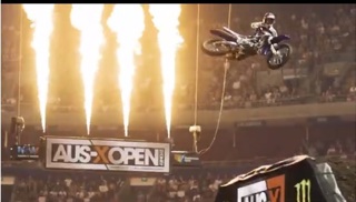Stadium transformed into motocross arena.