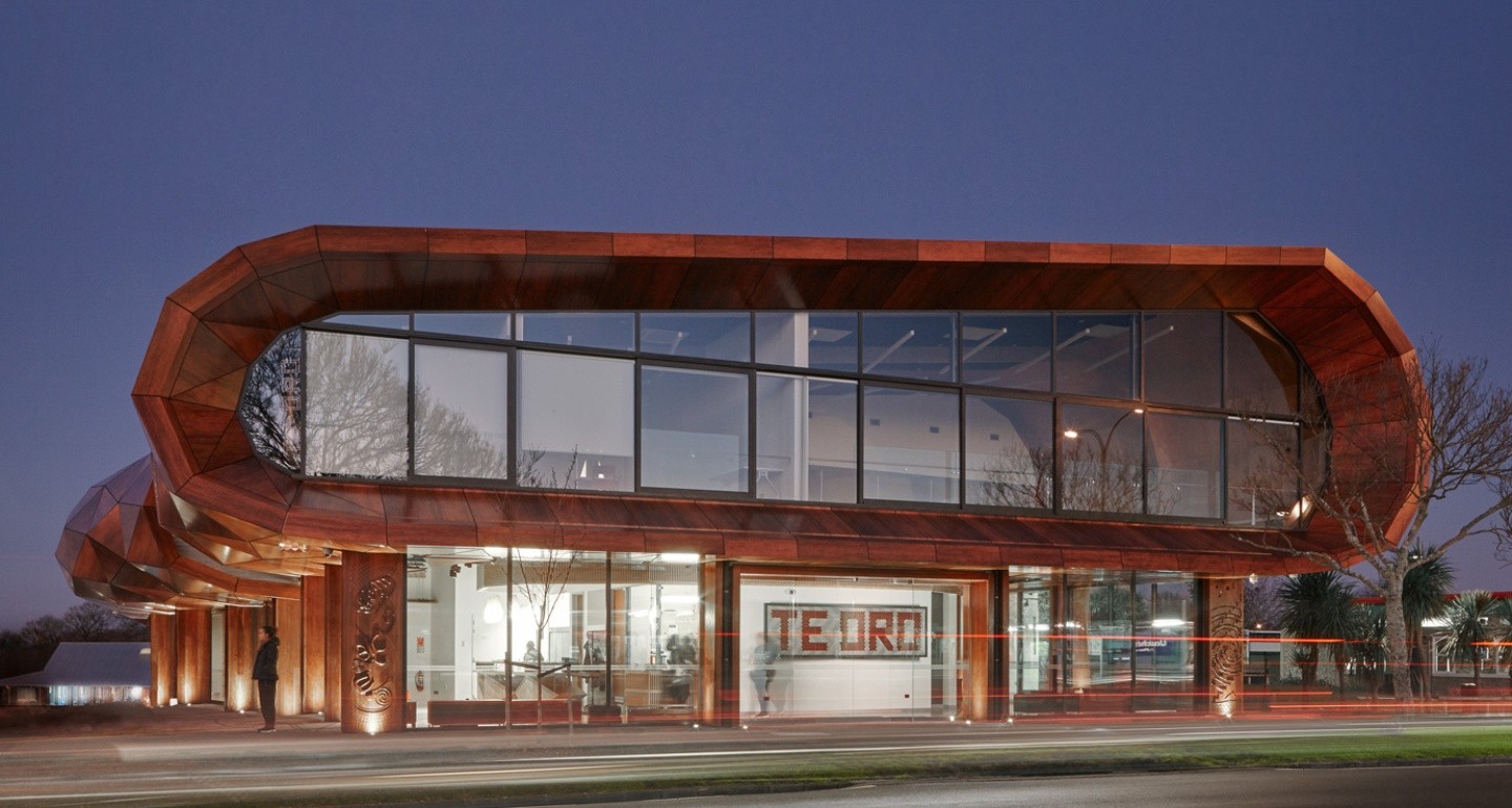 The name Te Oro has been gifted to the centre by Ngāti Pāoa with the endorsement of Ngāi Tai ki Tāmaki and Ngāti Whātua Ōrākei. As you enter the centre, you’ll be greeted with the tukutuku panel presenting an artistic expression of Te Oro’s visual identity and created by Te Roopū Raranga o Tāmaki Makaurau, a collective of artists and weavers.